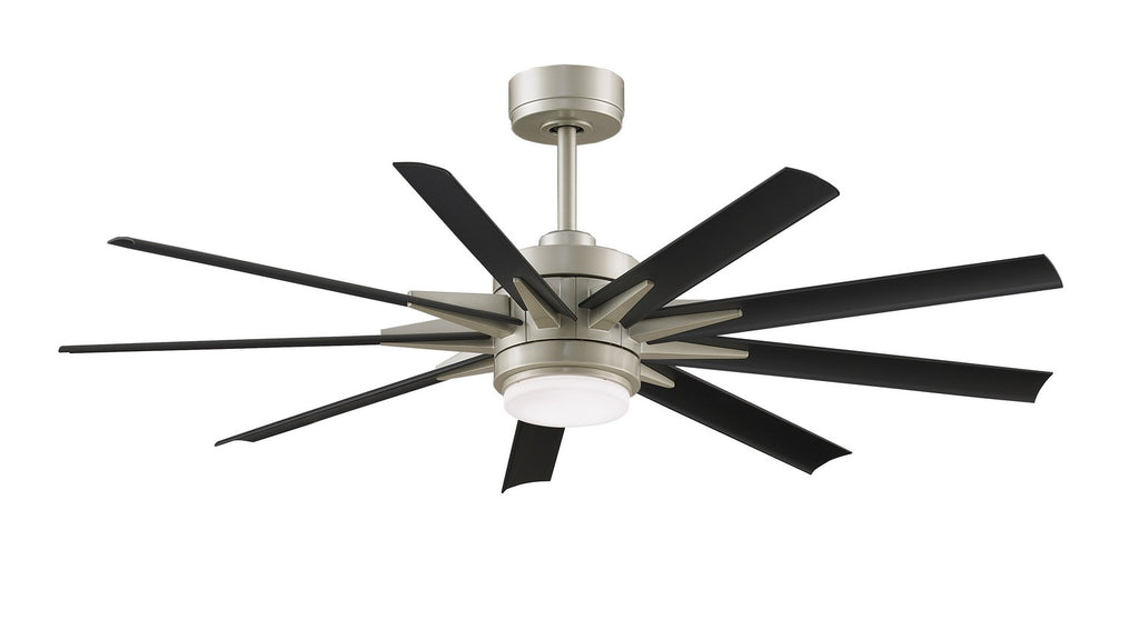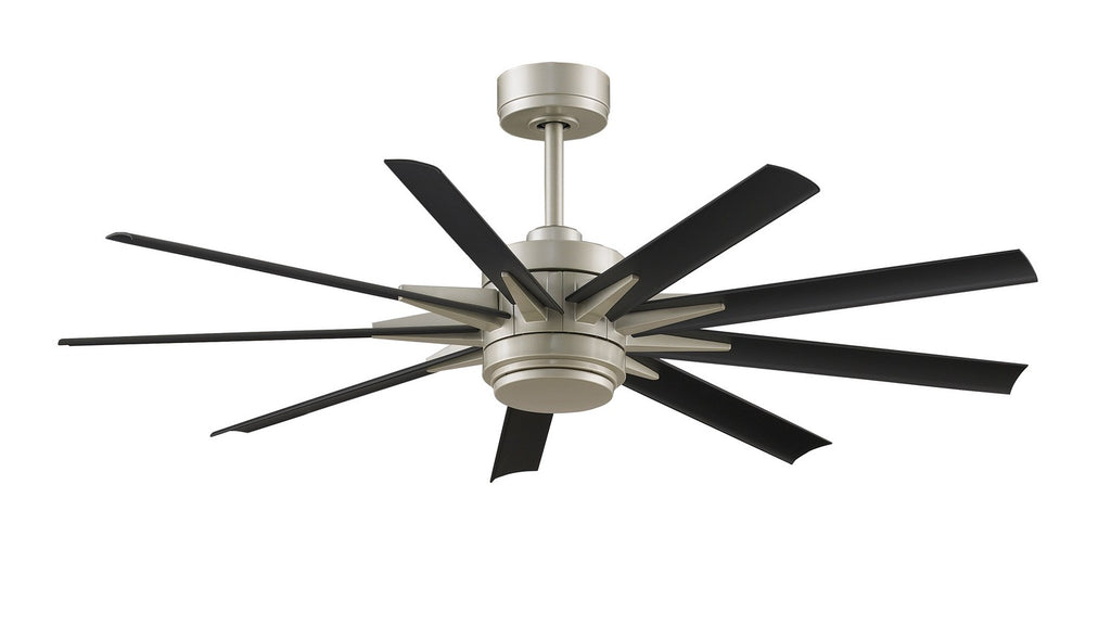 The Odyn, by Fanimation, knows its the boss whenever it enters a room. Its magnificence commands immediate attention and will surely dazzle onlookers. The Odyn's DC motor allows this fan to consume up to 70% less energy. The Odyn can accommodate up to an 84 inch blade sweep and operates on six forward and reverse speeds. The fan includes a remote control, integrated LED with CCT Select Temperature settings, and a cap for use without the light. Blades sold separately. This ceiling fan is Wet Rated for indoor or outdoor use. It can be controlled using the Fanimation Wi-Fi fanSync application.