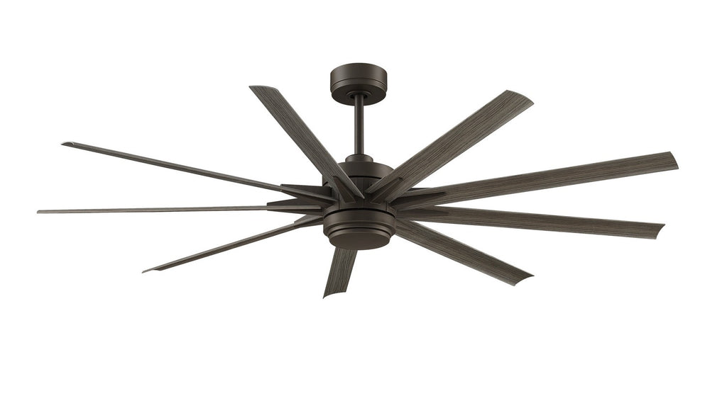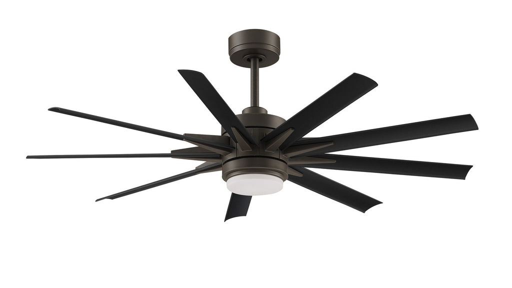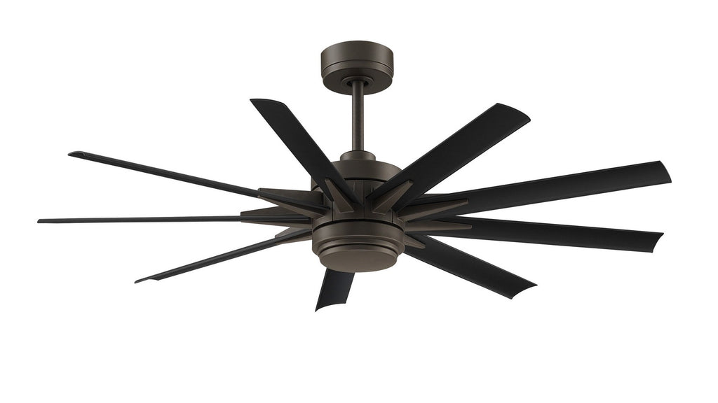 The Odyn, by Fanimation, knows its the boss whenever it enters a room. Its magnificence commands immediate attention and will surely dazzle onlookers. The Odyn's DC motor allows this fan to consume up to 70% less energy. The Odyn can accommodate up to an 84 inch blade sweep and operates on six forward and reverse speeds. The fan includes a remote control, integrated LED with CCT Select Temperature settings, and a cap for use without the light. Blades sold separately. This ceiling fan is Wet Rated for indoor or outdoor use. It can be controlled using the Fanimation Wi-Fi fanSync application.