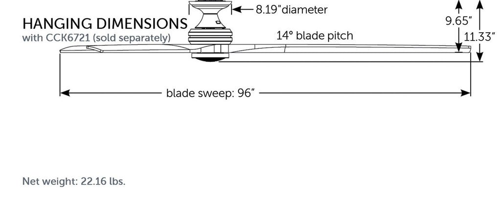 The Spitfire DC Custom features an exquisite three bladed design with many rich finish offerings to choose from. The Spitfire DC Custom is available in a 64, 72, 84 and 96 inch blade sweep (sold separately), and an optional LED light kit that features the correlated color temperature (CCT) Select functionality (sold separately). Handheld remote included. This ceiling fan is Damp rated for indoor or outdoor use and can be controlled using the Fanimation Wi-Fi fanSync application.