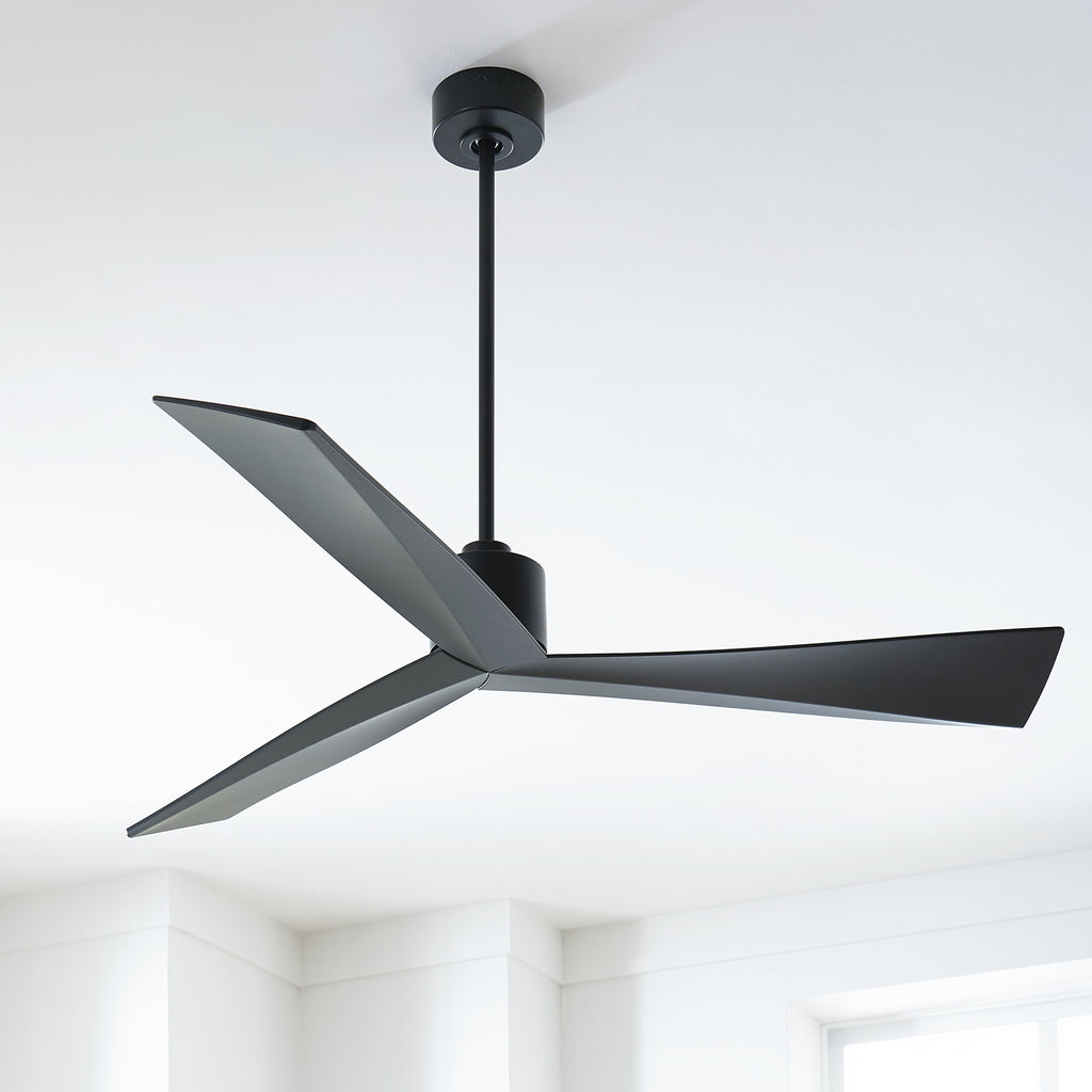 Making a bold statement with three uniquely carved, sloped blades, the Adler 60 ceiling fan has an ultra-modern aesthetic. Available in five finishes. The DC motor provides powerful airflow and outstanding energy efficiency. Adler 60 comes with a hand-held remote with six speeds. The Sean Lavin Adler 60 in Burnished Brass features a 85.0 X 28.0 6 speed motor with a Ten degree blade pitch.