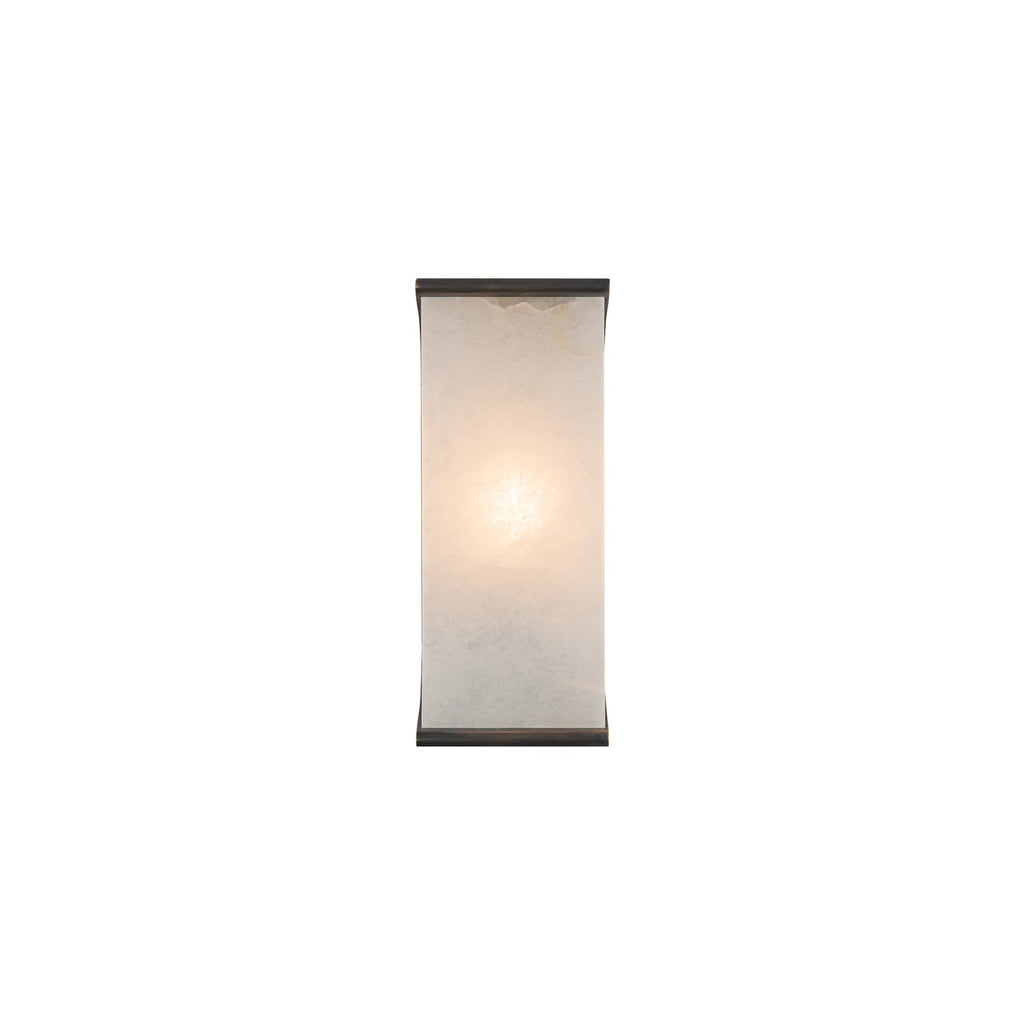 Abbott sconces feature a stone lens set into a gracefully curved organic metal base. It is modern and clean with a feminine touch. The organic curvature of the fixture's metal body holds the Alabaster lens with ease. Alabaster boasts distinct variations in both its veining and tone, a unique characteristic of a timeless natural material. No two pieces will look the exact same.