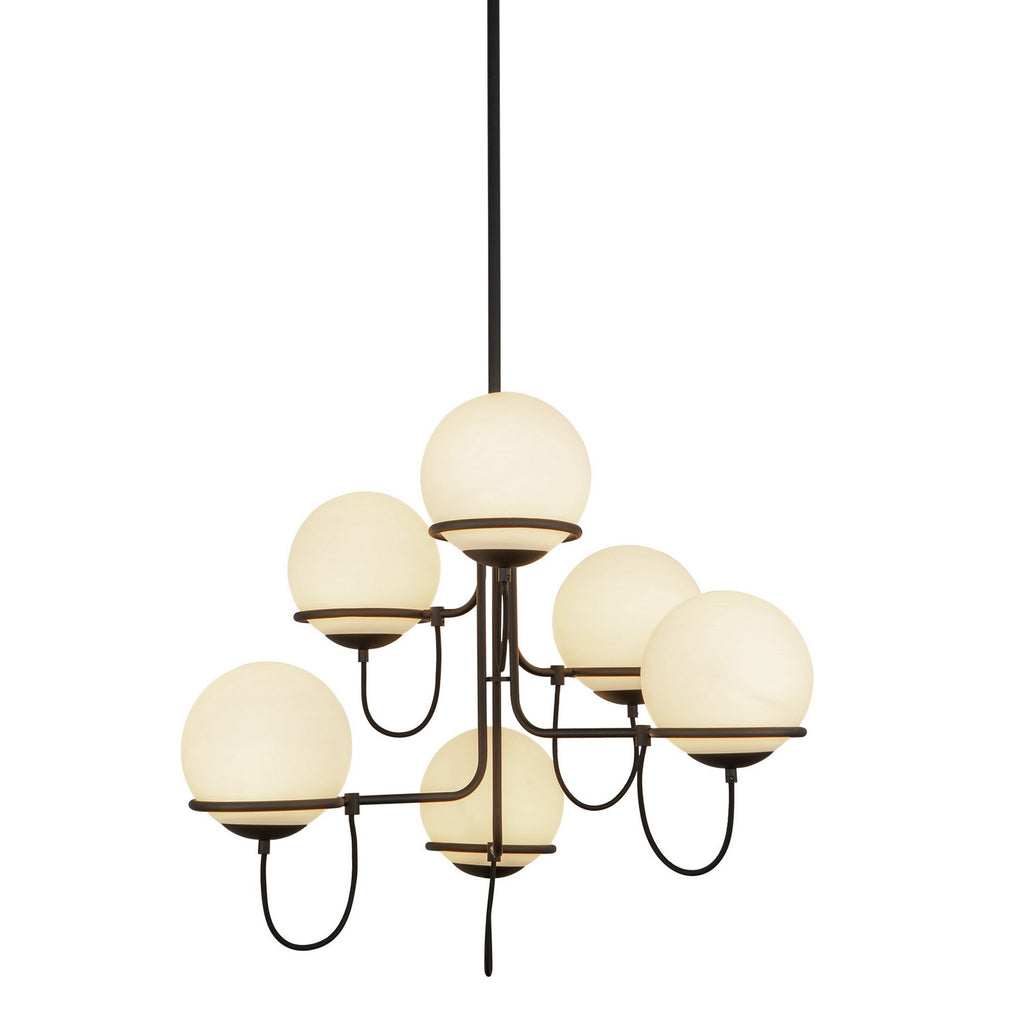 Alba is a mystical mix of Italian modern and 50's whimsy. With seemingly floating orbs of Matte Opal Glass dancing around a minimal frame, this collection seems to float effortlessly through any space. Featuring a stunning mix of Matte Black and Aged Gold details.