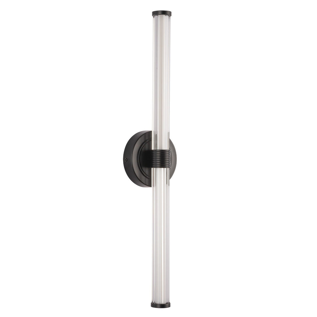 The Elsie lighting collection is all about sleek simplicity and refined elegance. It has a streamlined bar design with a clear ribbed outer shade. The ribbed metal detailing adds a touch of jewelry-like glamour, making the lighting shine brightly with a hint of sophistication. It's perfect for any modern space!