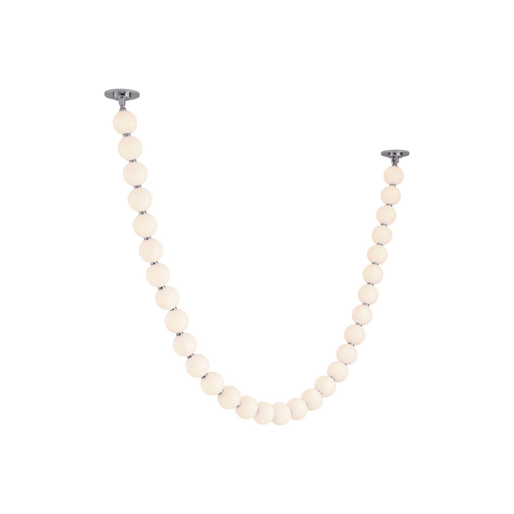 Inspired by the luxe pearls discovered by the sea, the Akoya collection is an instant classic. With unlimited amounts of configurations, this collection is perfect for any space in need of an awe-inspiring statement piece. Beads of illumination twirl in any way you prefer on a subtle frosted polished chrome frame. Now available in new sizes and canopy options.