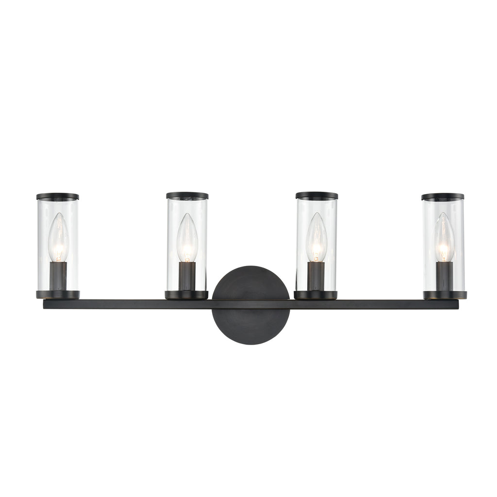 Evoking the elegance of antique candle-holders, Revolve has clear glass tubes accented with metal rings, gathered around a striking chandelier body. Available in multiple finishes, also available as a series of coordinating vanity and wall sconces.