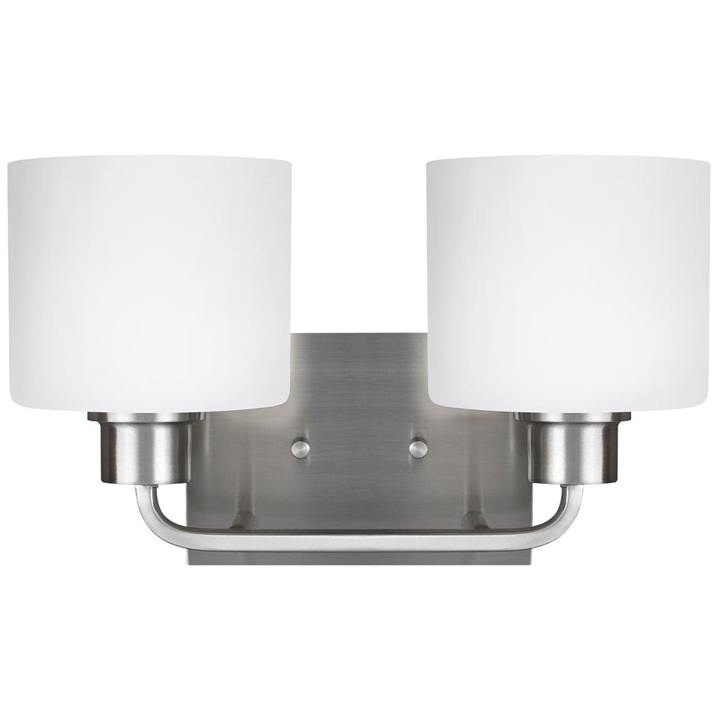 The Canfield two light vanity fixture in brushed nickel is an ENERGY STAR qualified lighting fixture that uses LED bulbs to save you both time and money. Behind every seemingly simple design lies unerring attention to restraint and obsessive attention to the tiniest details. The Canfield collection by draws on the modernist traditions of "less is more". Essential functional elements dictate the aesthetics, and clean lines prevail. Layers of intricately finished hand-brushed steel progress vertically to the soft glow of light diffused through finely etched glass diffusors. Canfield offers a "whole home" lighting solution, offering lighting in every imaginable category from the auspicious 15 light 3-tier chandelier, to the concise mini-pendant and one-light sconces. The collection is available in hand brushed Burnt Sienna for a warm, tactile, almost Craftsman design style, or a brushed nickel to emphasize the more architectural elements of your interior.