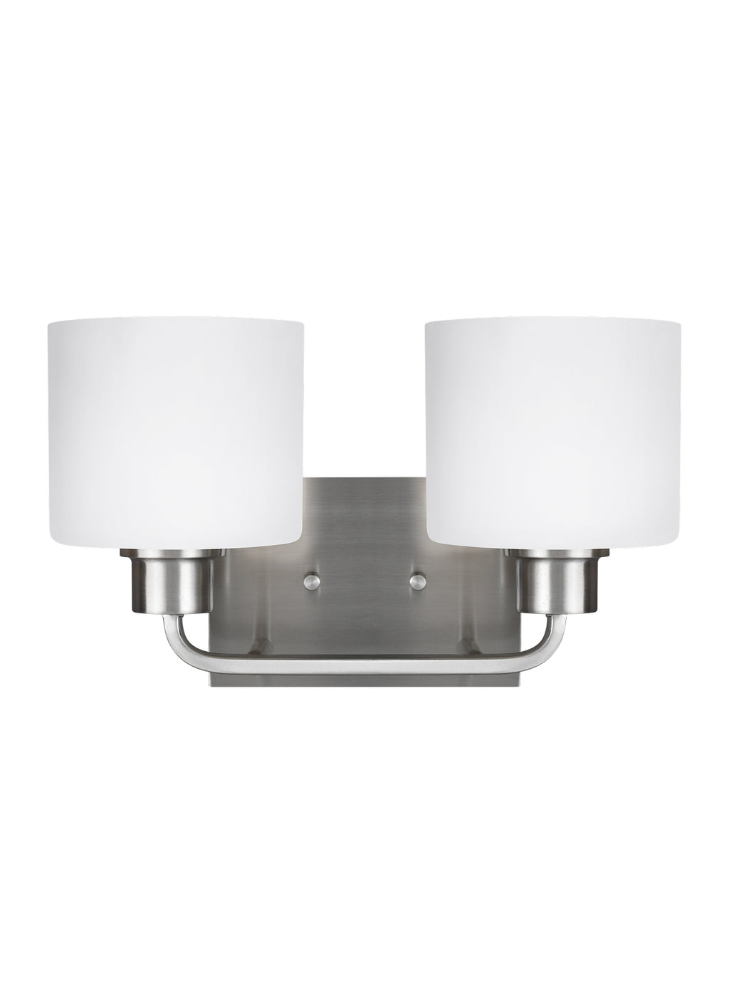 The Canfield two light vanity fixture in brushed nickel provides abundant light for your bath vanity, while adding a layer of today's style to your interior design. Behind every seemingly simple design lies unerring attention to restraint and obsessive attention to the tiniest details. The Canfield collection by draws on the modernist traditions of "less is more". Essential functional elements dictate the aesthetics, and clean lines prevail. Layers of intricately finished hand-brushed steel progress vertically to the soft glow of light diffused through finely etched glass diffusors. Canfield offers a "whole home" lighting solution, offering lighting in every imaginable category from the auspicious 15 light 3-tier chandelier, to the concise mini-pendant and one-light sconces. The collection is available in hand brushed Burnt Sienna for a warm, tactile, almost Craftsman design style, or a brushed nickel to emphasize the more architectural elements of your interior.