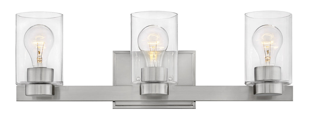 Miley's chic design complements a variety of decors with its sleek lines and elegant glass shape. The cast stepped back plate and cast glass holders in Chrome or Brushed Nickel finishes add to its beauty.