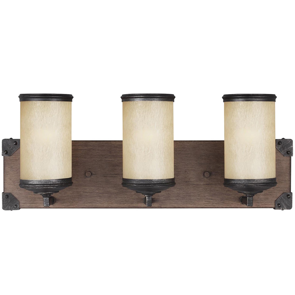 The Dunning three light vanity fixture in stardust is an ENERGY STAR qualified lighting fixture that uses LED bulbs to save you both time and money. Making a statement without overpowering the surrounding decor, the Dunning lighting collection by is a chic addition to a wide range of interiors. The bold design is inspired by farmhouse influences seen in the rustic rope detail highlighting the open, square frame which surrounds medium based lamps covered in Creme Parchment glass shades. The Dunning collection features a unique two-tone finish of Stardust on the overall metal structure, with the open frame in Cerused Oak finish. The full lighting collection features a three-light and five-light chandeliers, a one-light mini-pendant, a four-light island chandelier, a two-light flush mount, and one-light, two-light, three-light and four-light bath fixtures (all of which can mount up or down). Both incandescent lamping and ENERGY STAR-qualified LED lamping are available.
