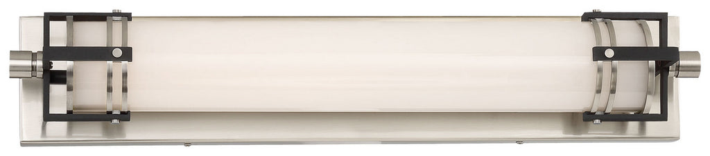 LED Bath in Brushed Nickel Finish with Sand Black Highlights with White Glass