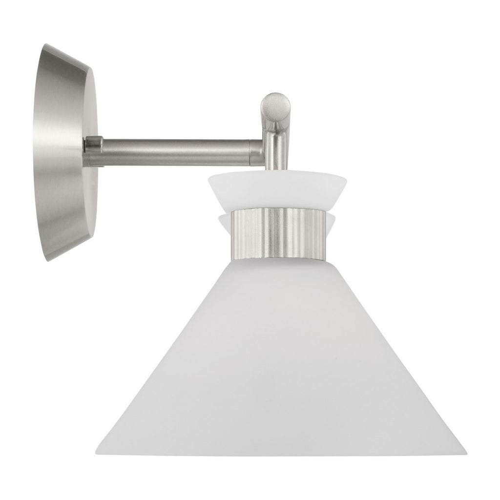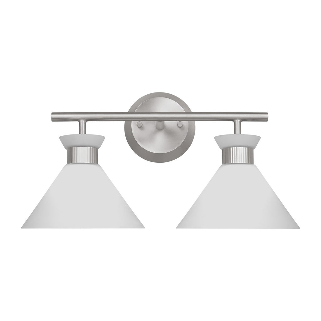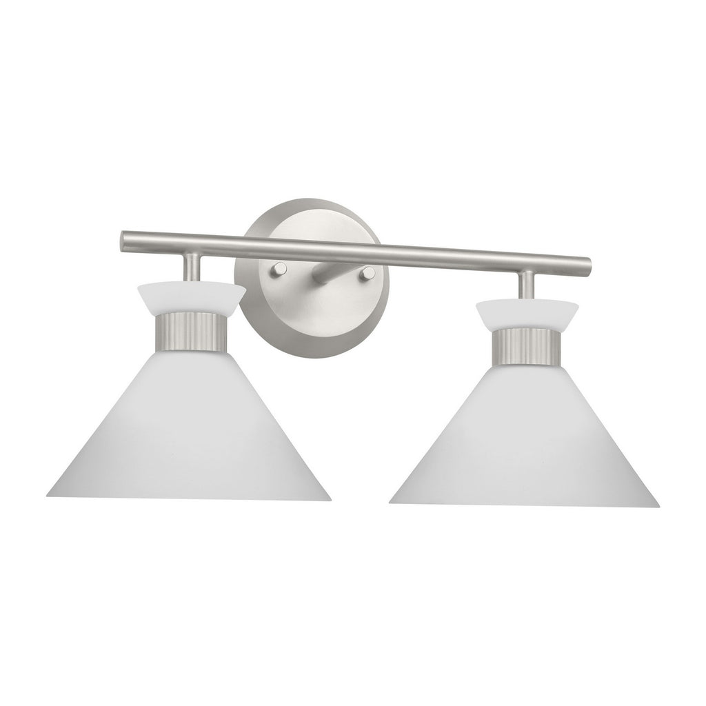 Inspired by playful mid-century modern design, the Drew & Jonathan Belcarra Two Light Wall / Bath Sconce is accentuated by a flared glass shade with ribbed metal details and etched white glass that bestows an almost whimsical touch to the clean design. Available in three finishes, Brushed Steel, Midnight Black, and Satin Brass, the Belcarra looks great on its own or installed above a bathroom vanity. This fixture may be mounted in the up or down position, and is cETL listed for damp locations, making it the perfect lighting solution for any space.