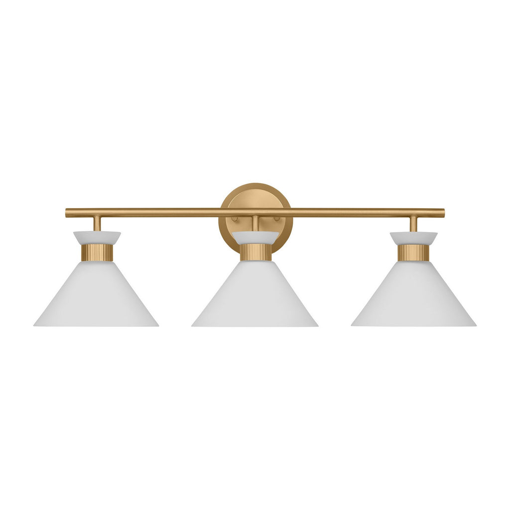 Inspired by playful mid-century modern design, the Drew & Jonathan Belcarra Three Light Wall / Bath Sconce is accentuated by a flared glass shade with ribbed metal details and etched white glass that bestows an almost whimsical touch to the clean design. Available in three finishes, Brushed Steel, Midnight Black, and Satin Brass, the Belcarra looks great on its own or installed above a bathroom vanity. This fixture may be mounted in the up or down position, and is cETL listed for damp locations, making it the perfect lighting solution for any space.