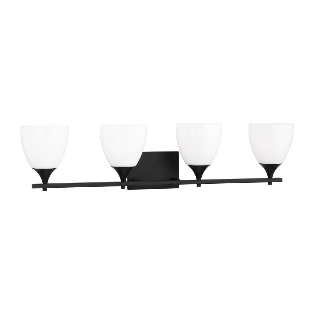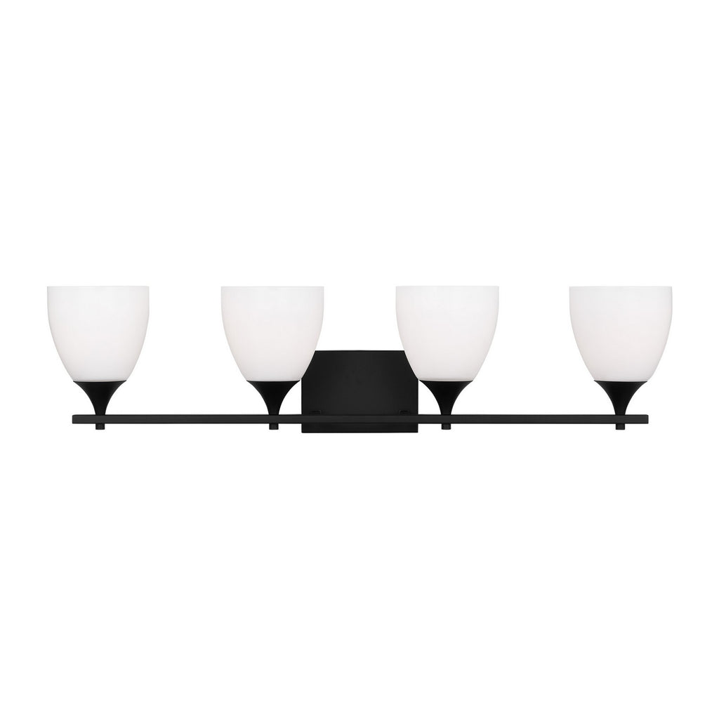 A modern take on a classic design, the Drew & Jonathan Toffino Four Light Wall / Bath Sconce breathes new life to its traditional shape with milk glass shades and striking, modern finishes. Made to coordinate across a broader range of bath hardware, the Toffino is available in four popular finishes, Brushed Steel, Chrome, Midnight Black, and Satin Brass, and looks great on its own or installed above a bathroom vanity. This fixture may be mounted in the up or down position, and is cETL listed for damp locations, making it the perfect lighting solution for any space.