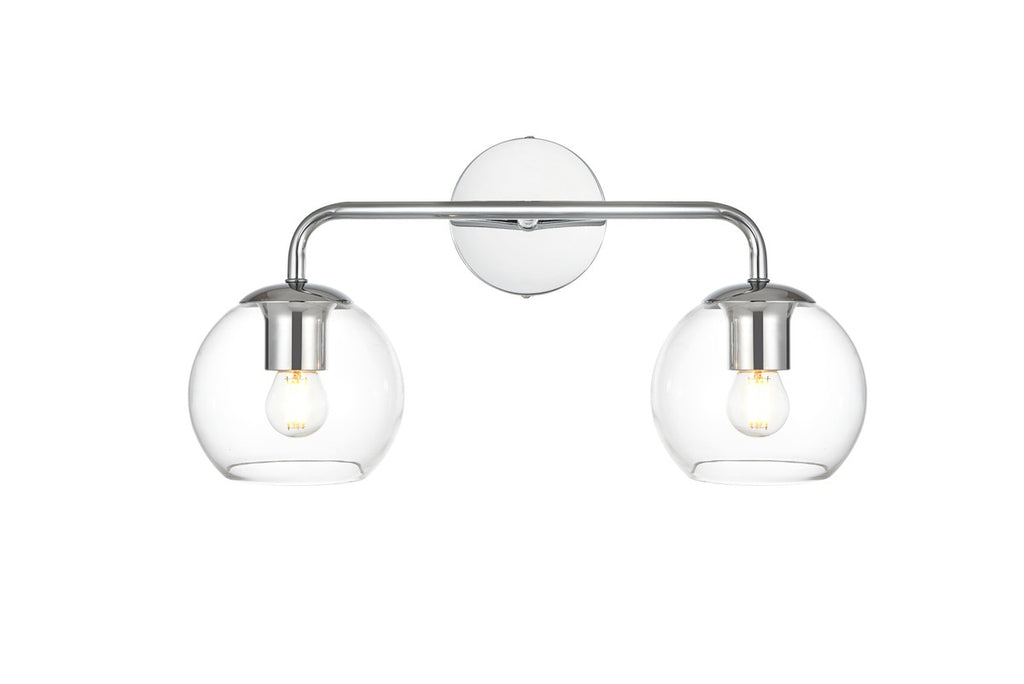 A modern twist on a traditional design, this vanity light is perfect for sprucing up your bathroom. Rated for use in damp locations, this iron fixture features a round backplate, curved arms, and orb accents. Completely versatile, you can place this wall light as an uplight or downlight. Rated for use in damp locations, this will work perfectly over a vanity in your bathroom.
