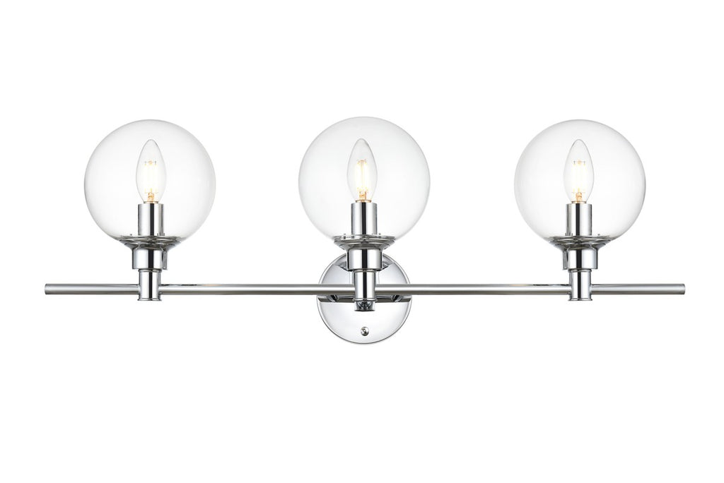This armed sconce features a streamlined and minimalistic design that complements any space in your home. Shown with the clear glass shades, this wall sconce is versatile and can be placed in a bathroom,entry way, or hallway. Compatible with dimmers, so you'll have the right amount of light in any given time of the day. The hardwired fixture is safe to use in damp locations. Made from iron with a modern finish, it includes a round backplate and a matching arm that holds in place three 40W bulb ( sold separately). Available in multiple finishes. Can be installed as an uplight or a downlight.