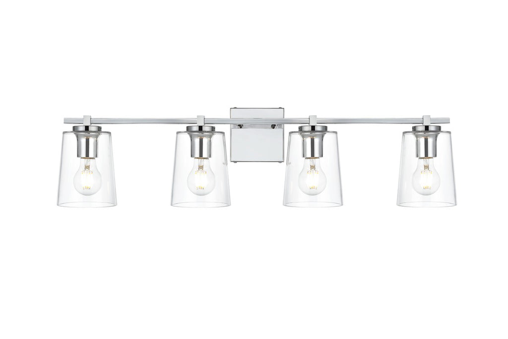 Defined by a sleek metal arm extends to suspend the clear cylinder glass shade. A contemporary stunner, it shows off the straight line details from the backplate and the streamline thin metal arm. Compatible with dimmers, so you'll have the right amount of light in any given time of the day. Completely versatile, you can place this wall light as an uplight or downlight.