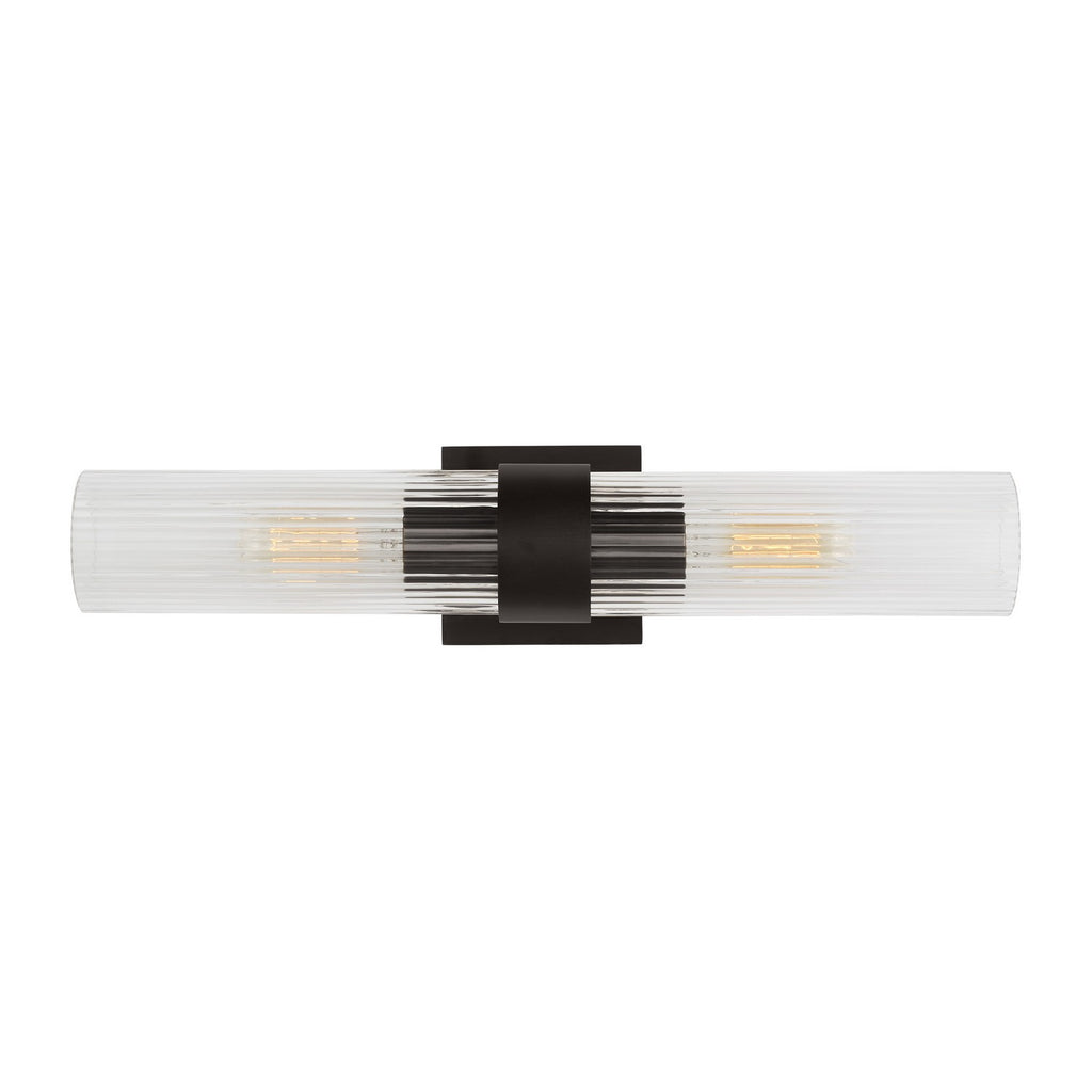 Designed by Chapman & Myers, the Geneva two-light vanity fixture in Aged Iron is the perfect way to achieve your home's desired fashion or functional needs. A fluted shade forms an elegant, dynamic silhouette balanced by a strong frame of Aged Iron, Burnished Brass, or Polished Nickel.