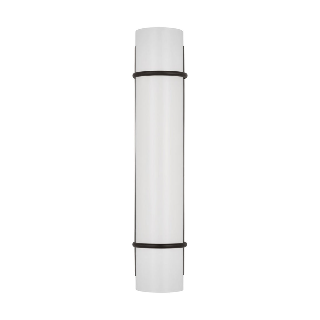 The Amelie Integrated LED vanity series by Chapman & Myers is a simplified cylindrical linear bath light with two metal rings inspired by a vintage cuff bracelet. Each sconce has a cylindrical glass shade accented by two metal rings on either end of the sconce and a metal back plate. Amelie is illuminated with custom-led panels to provide an even glow through the white glass shades. Available in three sizes and three finish options. Dimmable Integrated LED lamping with Damp location rating.