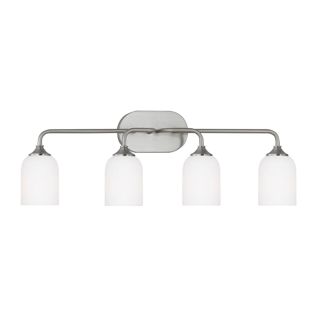 The subtle detail of the Emile series allows this transitional design to fit into any décor easily. The sleek, sweeping arms and Satin-Etched glass shades add touches of elegance to its streamlined profile. Equally at home in a contemporary, urban setting or a traditional décor in the suburbs, Emile is available in three transitional finishes.