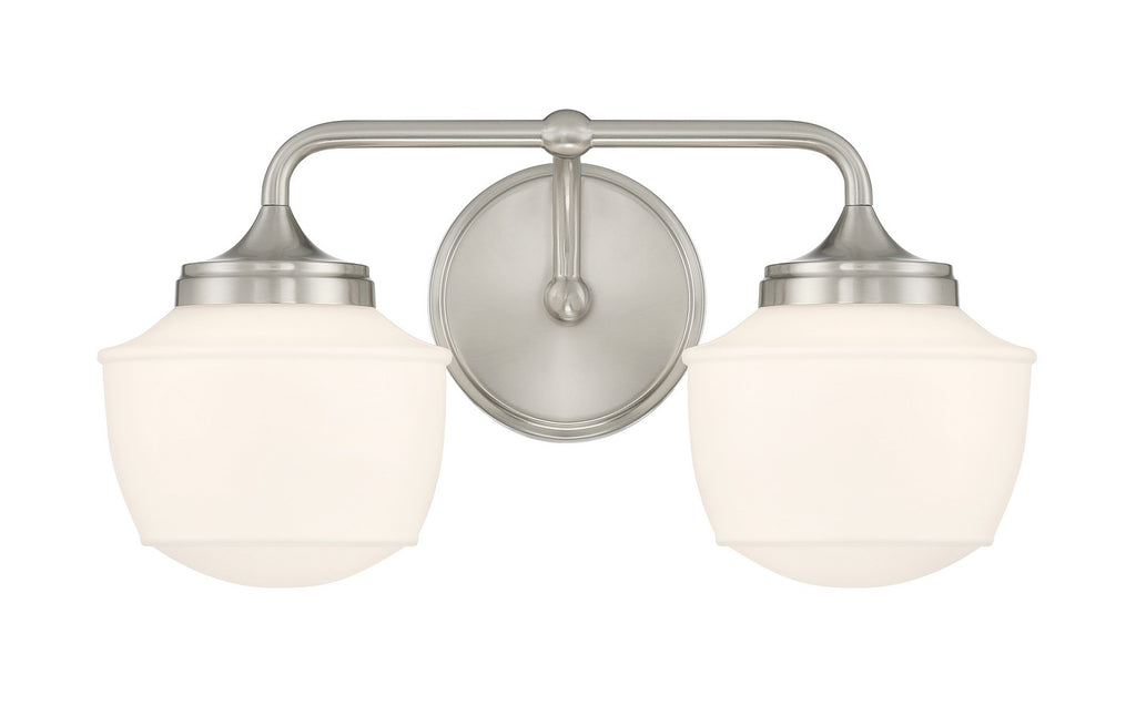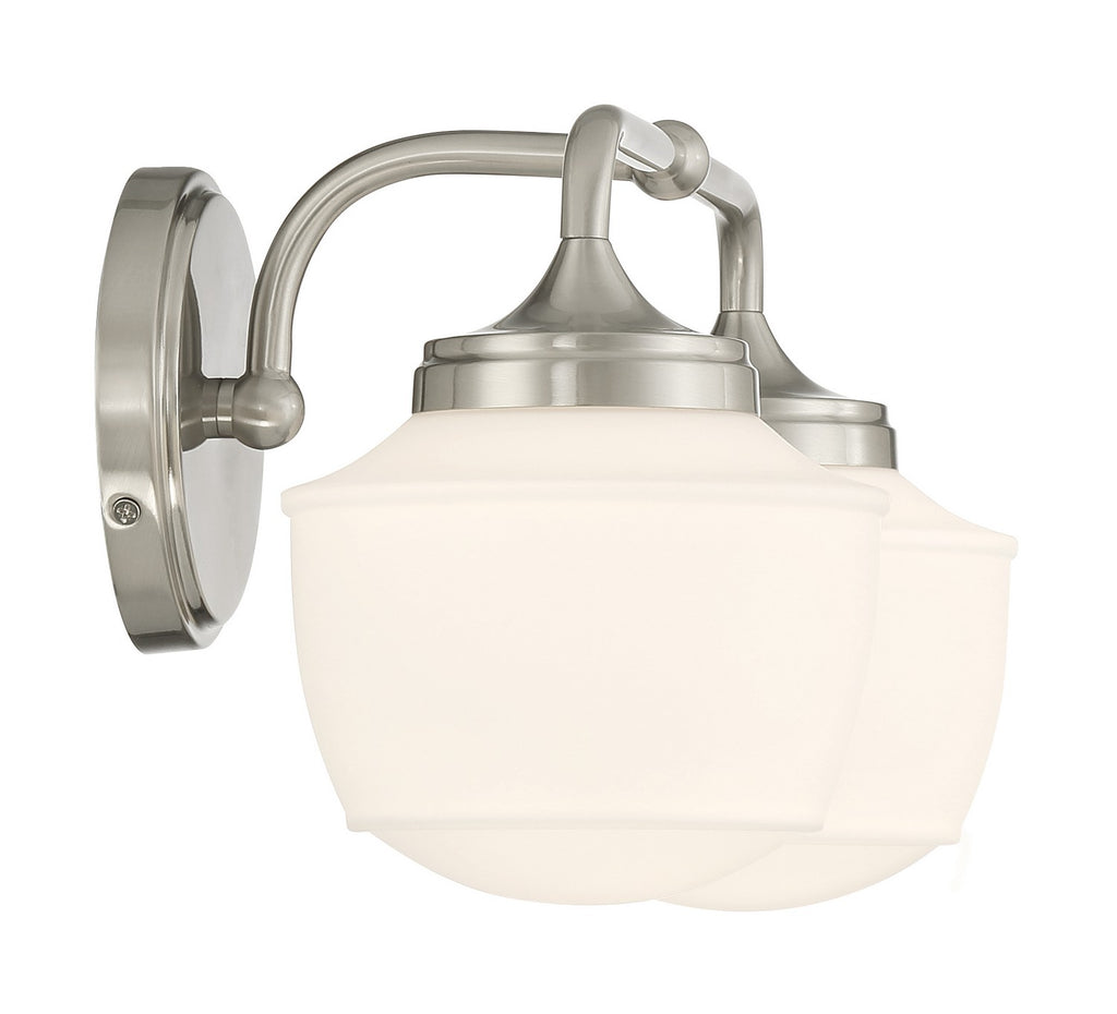 2 Light Bath Vanity in Brushed Nickel, Reversible, with Etched Opal Glass