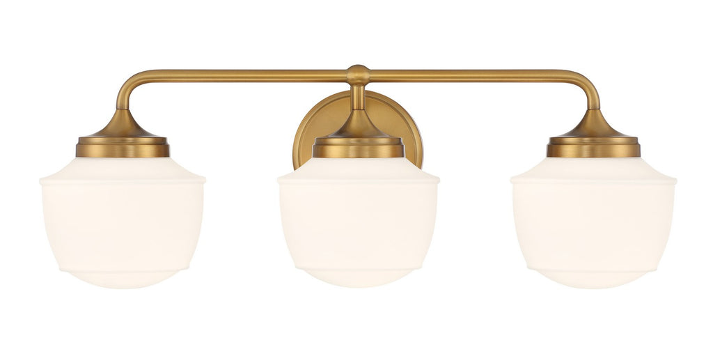 3 Light Bath Vanity in Aged Brass, Reversible, with Etched Opal Glass