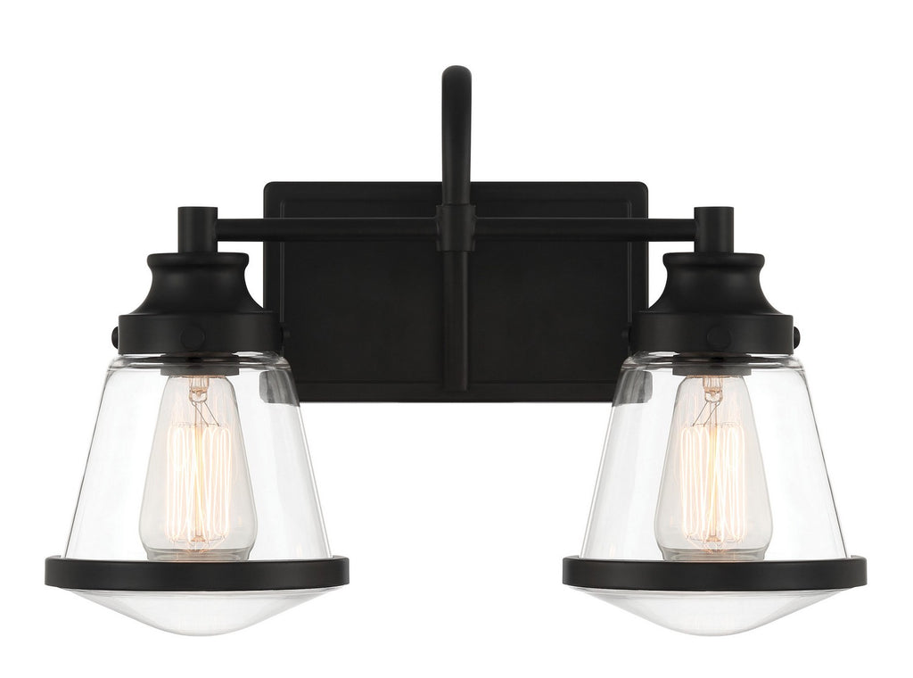 2 Light Bath Vanity in Coal Black, Reversible with Clear Glass