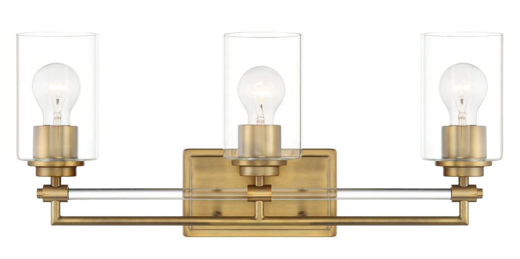 3 Light Bath Vanity in Aged Brass, Reversible, with Clear Glass