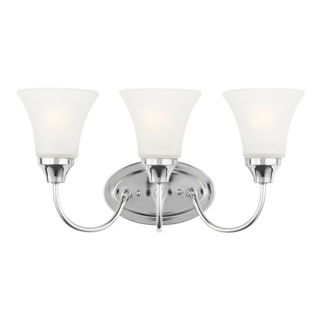 The Holman three light vanity fixture in chrome offers shadow-free lighting in your powder room, spa, or master bath room. Holman features softly flared glass and curved arms, with just enough detail to give the overall look a lift while keeping it simple enough for those on a budget