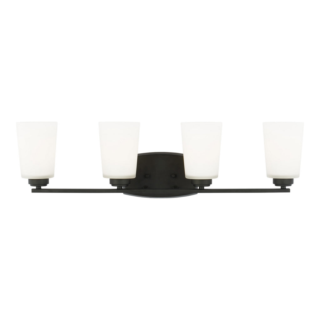 The Franport four light vanity fixture in midnight black provides abundant light for your bath vanity, while adding a layer of today's style to your interior design. Modernist influences abound in the Franport Collection. Shades with sharp lines and simplified bases showcase the minimalist approach with a twist. Franport has fixtures for all parts of the property. Available in both Burnt Sienna and Brushed Nickel finish choices as well as Nickel for bath fixtures. With fixtures in various sizes and configurations, the Franport Collection will coordinate the same design theme across several different rooms. Its assortment includes three-, five-, nine- and fifteen-light chandeliers, and one- two-, three- and four- light bath vanity fixtures. The Franport collection pars wonderfully with Geary ceiling fixtures. Incandescent and ENERGY STAR-qualified LED lamping are available, all fixtures are California Title 24 compliant.