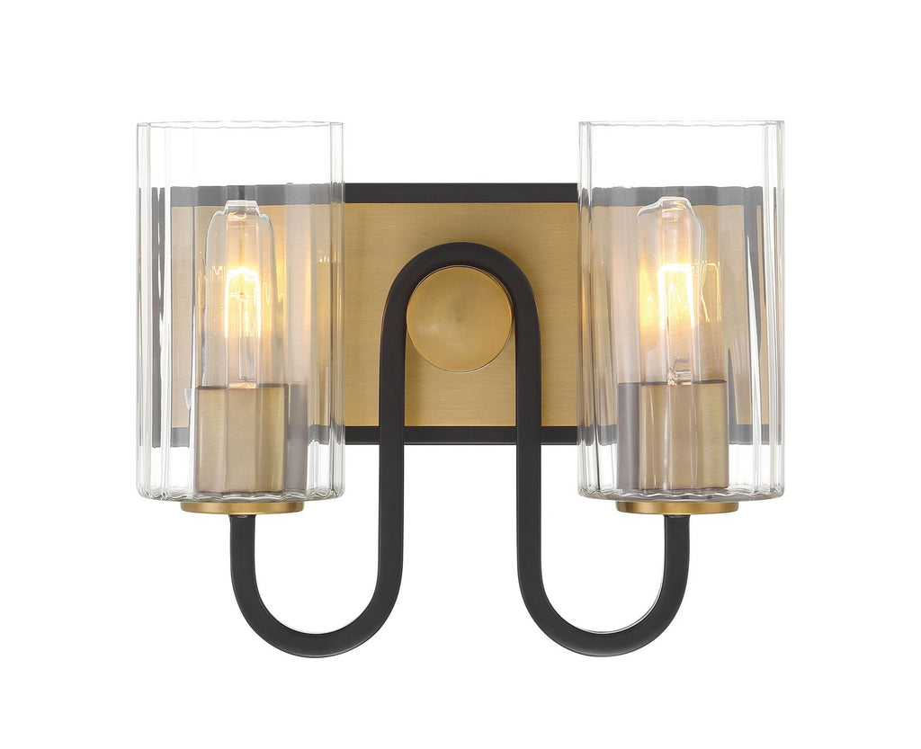 2-Light Vanity - Legacy Brass and Matte Black with Clear Ribbed Glass