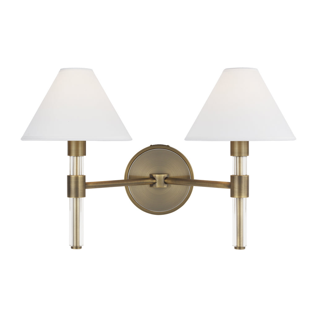 The Robert two light vanity fixture has strong clean lines of Lucite stems that elevate and support the paper empire shades in this shapely series.