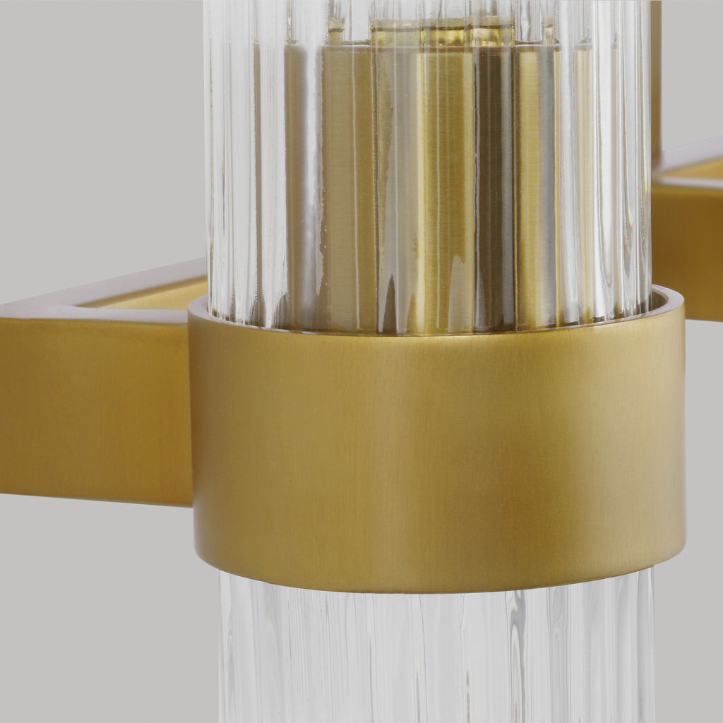 In the Geneva three light vanity fixture, slender, fluted shades form an elegant, dynamic silhouette that's balanced by a strong frame of Burnished Brass or Polished Nickel.