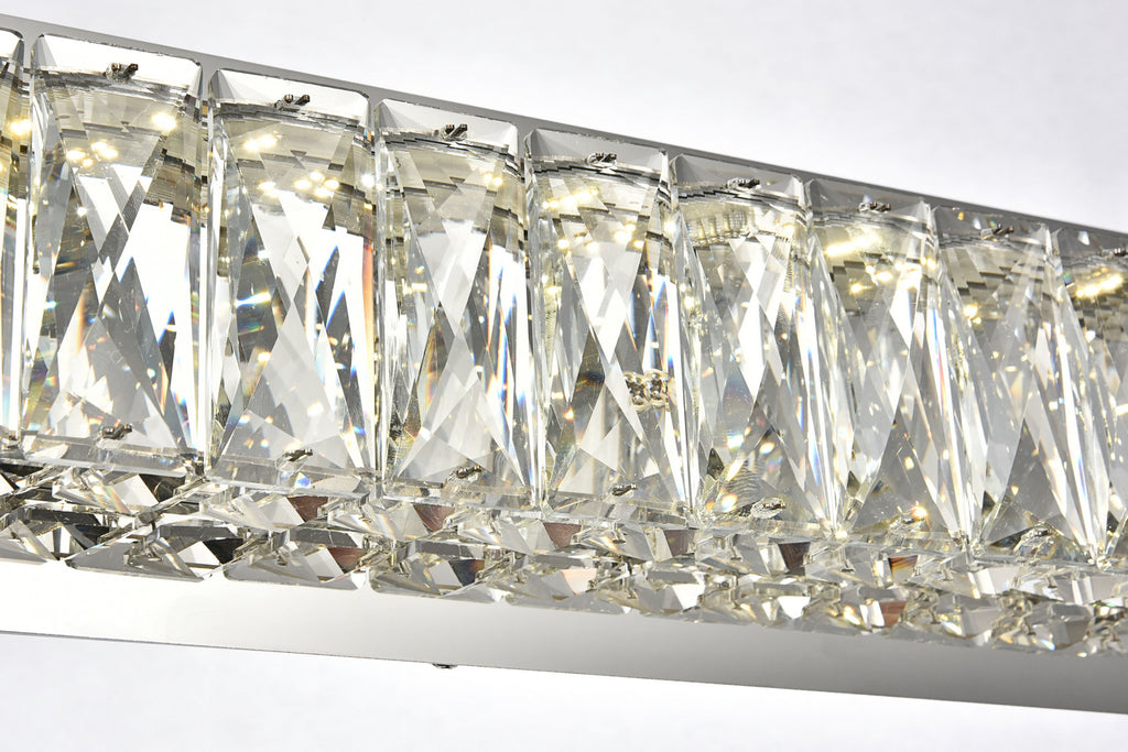Monroe collection wall sconces dress up a bathroom, office, or bedroom without overwhelming the surrounding décor. A rectangular stainless-steel frame and backplate would seem austere if it weren't covered by a row of shining rectangular royal-cut clear crystals. The chrome-finished backplate is polished to a mirror shine and reflects the glittering crystals for additional sparkle. Available in three size options with a sleek chrome finish that completes this modern look.