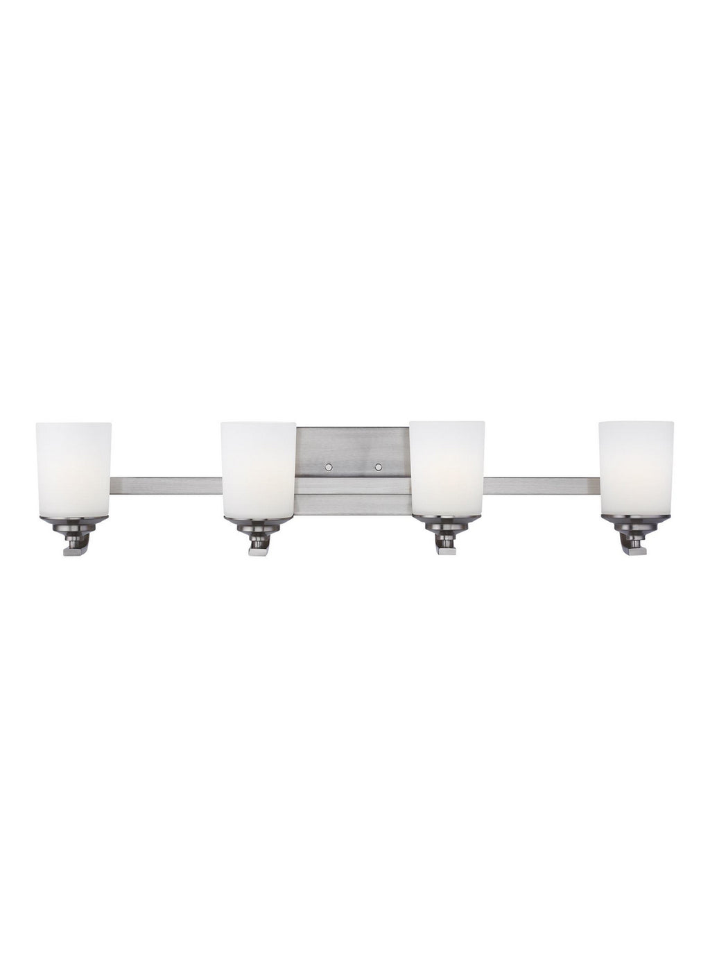 The Kemal four light vanity fixture in brushed nickel is an ENERGY STAR qualified lighting fixture that uses LED bulbs to save you both time and money.