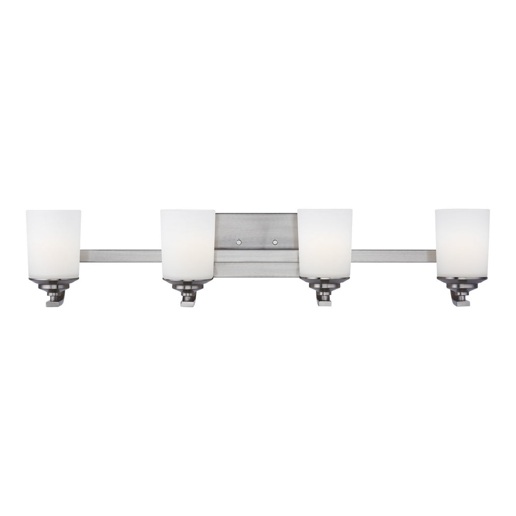 The Kemal four light vanity fixture in brushed nickel provides abundant light for your bath vanity, while adding a layer of today's style to your interior design.