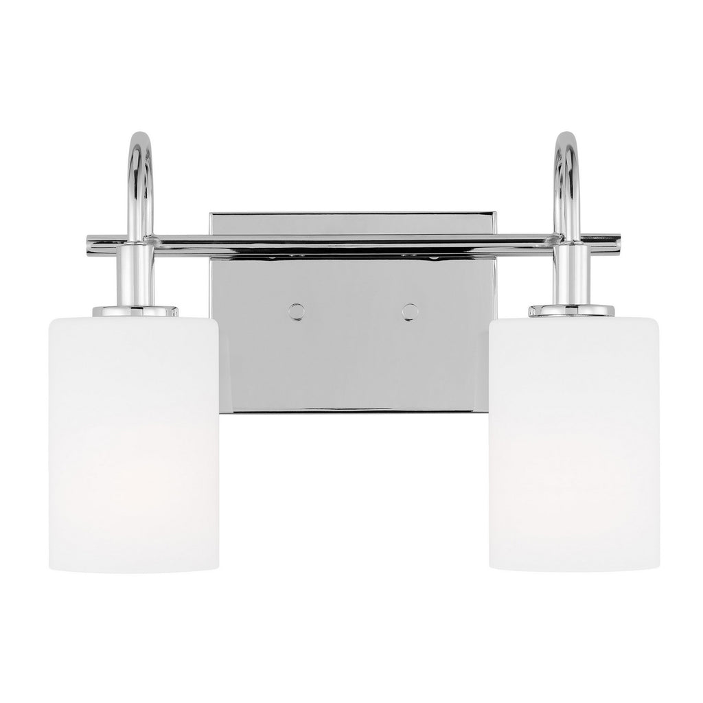 Oak Moore is a universal vanity series available in four finishes. Curved bar detail and etched white shade give it a transitional look.  Install the light with glass shades up or down to light up every corner of your room. The shades are made of Etched White glass to cast a soft light throughout your vanity area.