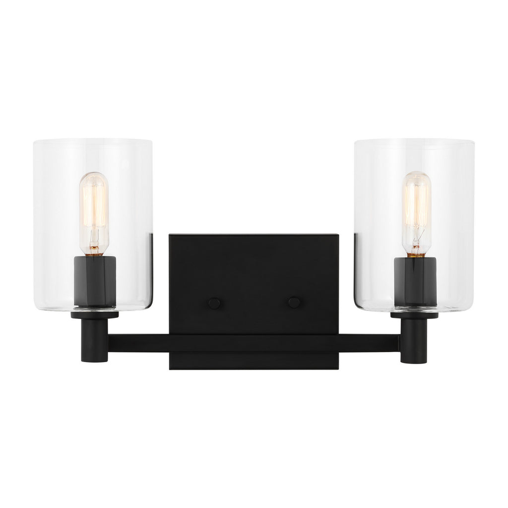 The Fullton two light vanity fixture in Midnight Black is sleek, contemporary, and uber minimalistic. Visual interest is created using a mix of rectangular and round frames, a subtle design detail. Although this collection is contemporary, it can be mixed in with variety of collections with ease.