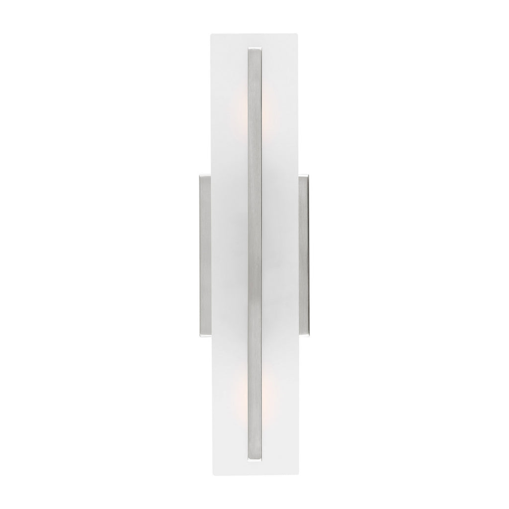 The Dex two light vanity fixture in brushed nickel silver is a contemporary design with three finishes and white acrylic diffuser creating a crisp look and bright clean ambiance. With the clean lines and classic styling, the Dex vanity series is versatile enough to be used in any transitional setting.