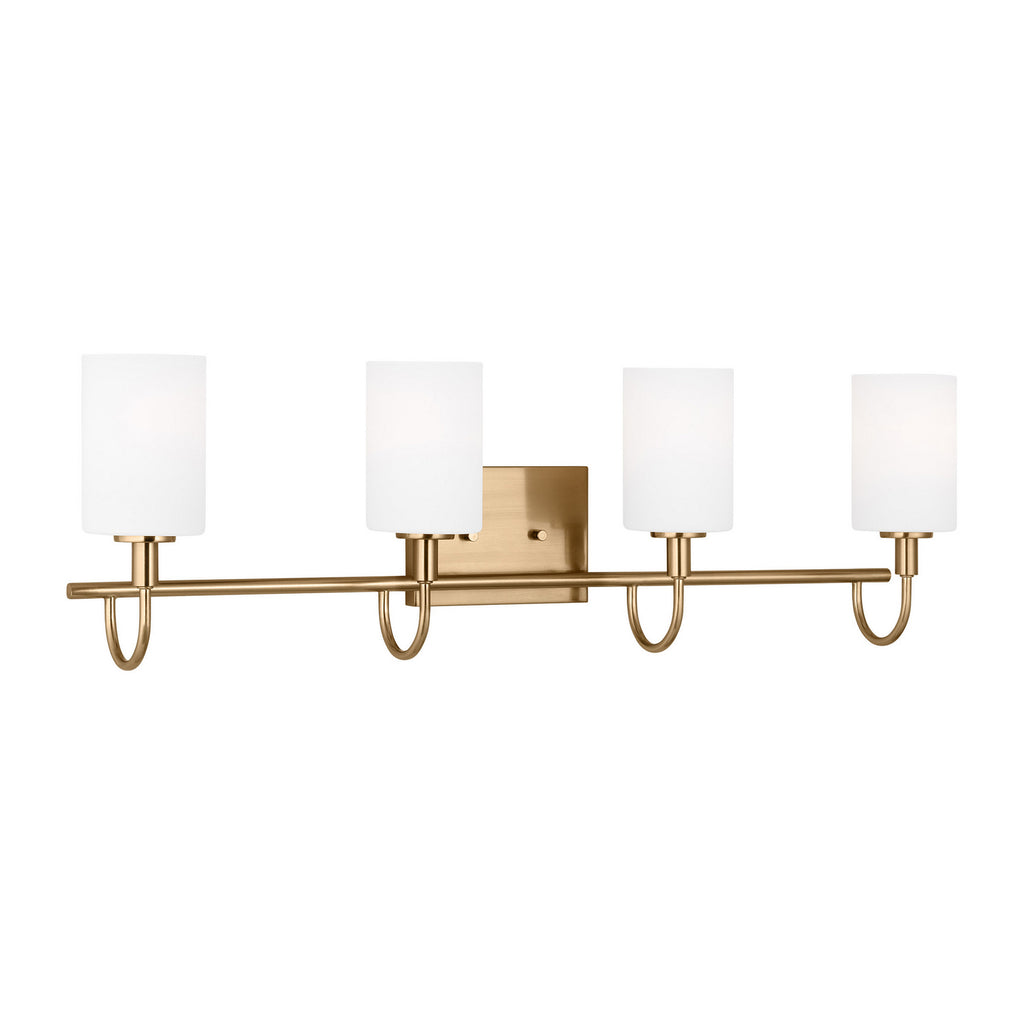 Oak Moore is a universal vanity series available in four finishes. Curved bar detail and etched white shade give it a transitional look.  Install the light with glass shades up or down to light up every corner of your room. The shades are made of Etched White glass to cast a soft light throughout your vanity area.
