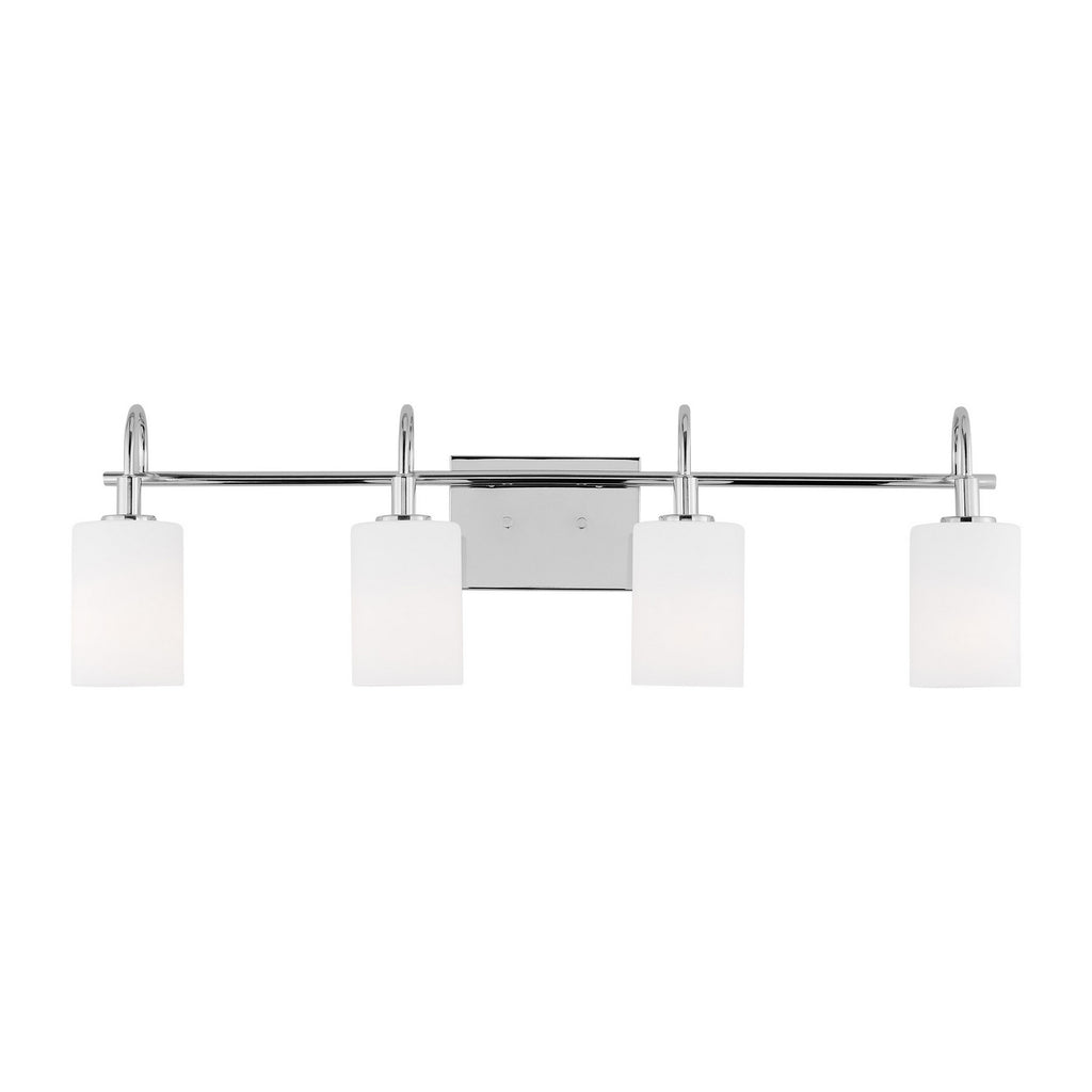 Oak Moore is a universal vanity series available in four finishes. Curved bar detail and etched white shade give it a transitional look.  Install the light with glass shades up or down to light up every corner of your room. The shades are made of Etched White glass to cast a soft light throughout your vanity area.