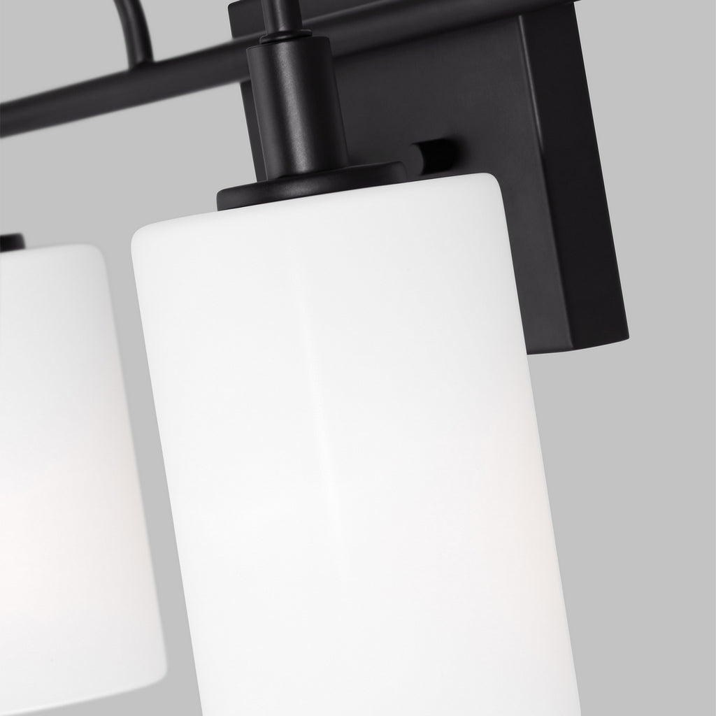 Oak Moore is a universal vanity series available in four finishes. Curved bar detail and etched white shade give it a transitional look.  Install the light with glass shades up or down to light up every corner of your room. The shades are made of Etched White glass to cast a soft light throughout your vanity area.