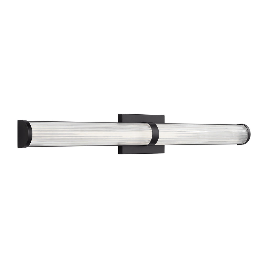 Syden is crafted of steel with clean-lined backplate and ridged glass shade. This understated detailing makes for a versatile design, at home in either modern, transitional or traditional interiors. Syden can be mounted horizontal or vertical.