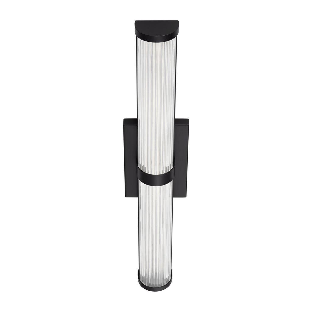 Syden is crafted of steel with clean-lined backplate and ridged glass shade. This understated detailing makes for a versatile design, at home in either modern, transitional or traditional interiors. Syden can be mounted horizontal or vertical.