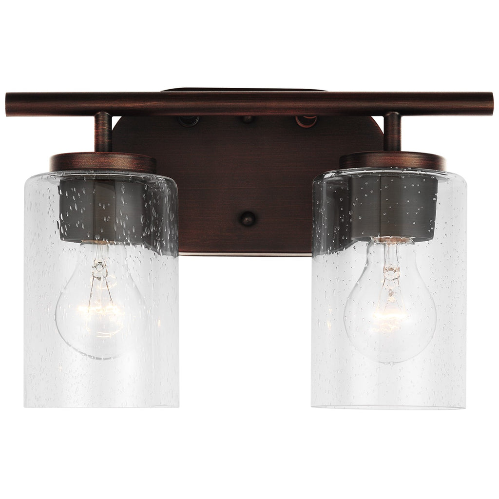 The Oslo two light vanity fixture in Bronze offers shadow-free lighting in your powder room, spa, or master bath room. The Oslo lighting collection by is a sleek design, with smooth and clean lines. The Clear Seeded glass adds to this collection's contemporary and minimalist character. Offered in Chrome, Brushed Nickel, Bronze and Midnight Black finishes, the collection includes nine-, five-, and three-light chandeliers, mini pendant, both flush and semi-flush ceiling fixtures, as well as one-, two-, three- and four-light wall/bath fixtures. Both incandescent lamping and ENERGY STAR-qualified LED lamping are available. All fixtures are California Title 24 compliant.
