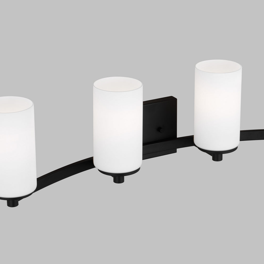 The Hettinger four light vanity fixture in Midnight Black provides abundant light for your bath vanity, while adding a layer of today's style to your interior design. The Hettinger lighting collection by combines a traditional look with chic, modern charm. The minimalism of the tubular glass shades balances with the unique, outward-curve of the semi-circular arm detail. Hettinger is available in three finishes - Bronze and Brushed Nickel for the whole collection, and Chrome, Midnight Black and Satin Brass for the bath vanities. The assortment includes six- and nine-light chandeliers, a one-light wall sconce, two-, three- and four-light bath vanity fixtures, a three-light pendant and two- light semi-flush convertible pendant. Incandescent and ENERGY STAR-qualified LED lamping are available, all fixtures are California Title 24 compliant.