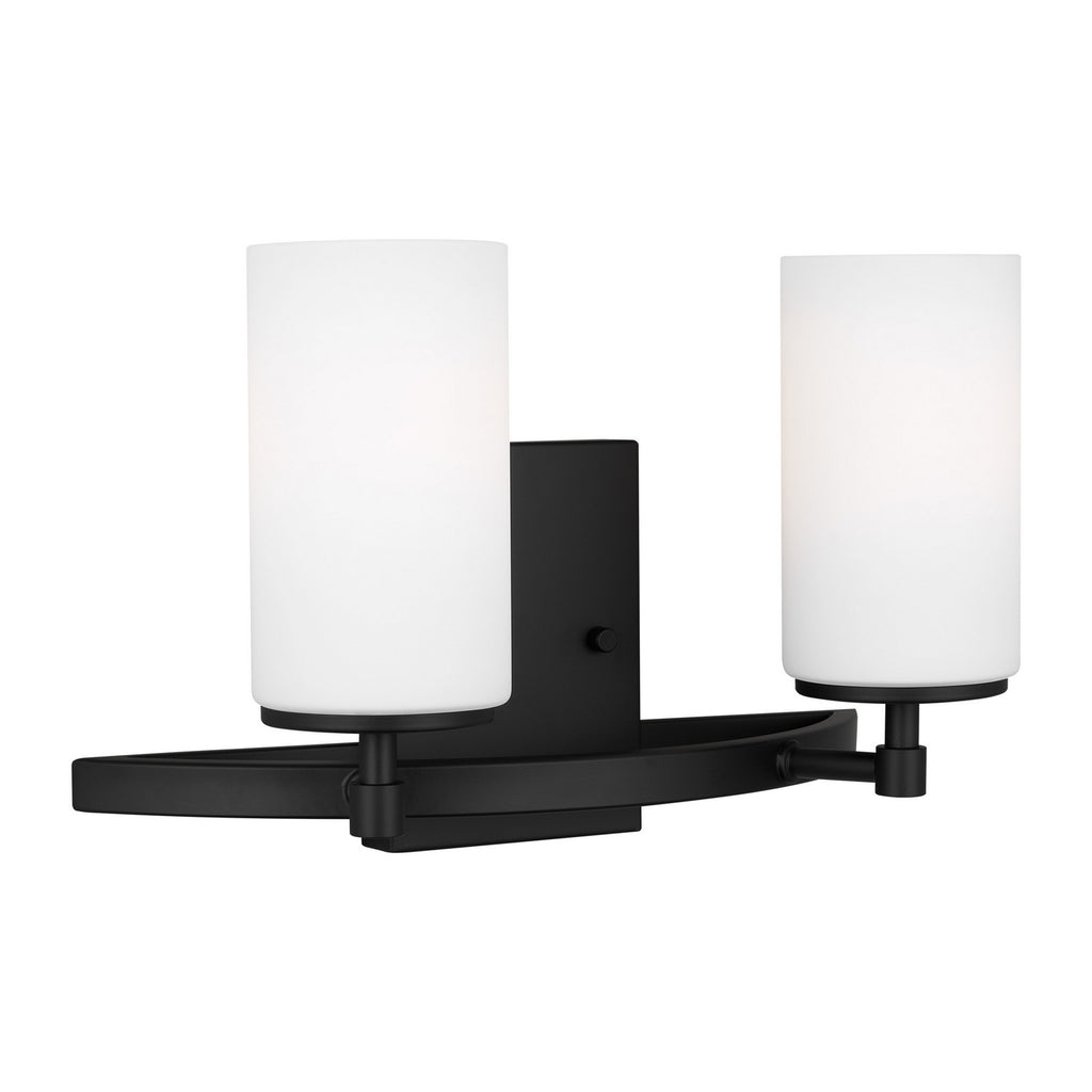 The Alturas two light vanity fixture in Midnight Black provides abundant light for your bath vanity, while adding a layer of today's style to your interior design. The silhouette of the modern Alturas lighting collection by features an interlocking, spherical steel frame, which harkens back to the Unisphere constructed for the 1964 New York World's Fair. The minimalist Alturas Collection draws the eye to the soft, warm glow of the light emitted from the cylindrical Satin Etched glass shades. The full assortment includes three-, five- and nine-light chandeliers, a one-light mini pendant, a three-light pendant, a two-light semi flush which is convertible into a pendant, and one-, two-, three- and four-light bath fixtures. All fixtures are offered in Brushed Oil Rubbed Bronze, Brushed Nickel, Midnight Black and Satin Brass finishes, the bath fixtures are also offered in Chrome finish. Incandescent and ENERGY STAR-qualified LED lamping are available, all fixtures are California Title 24 compliant.