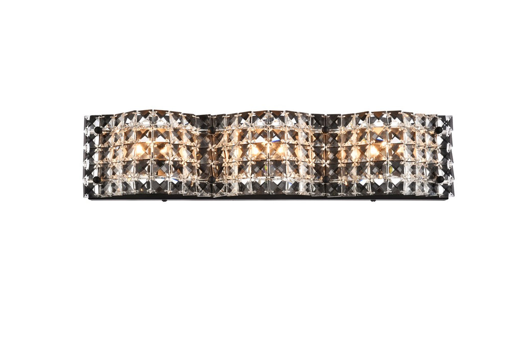 As beautiful as a gently rolling sea, Tate collection wall sconces brighten your walls with sumptuously sparkling waves. Three hidden bulbs (Not included) connect to a stainless-steel black-finished backplate and form three graceful ripples on the surface of this design. A stunning exterior is completely covered with glittering clear royal-cut square Crystals. The space between each square is subtly highlighted by a small stainless-steel flower-shaped accent, giving the overall look an additional level of intricacy. Guaranteed Not to rock the boat in a bathroom or bedroom
