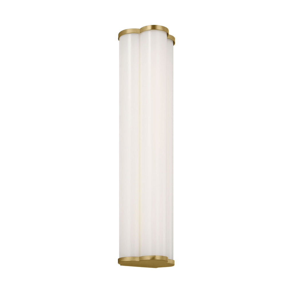 The Freya is a unique design by kate spade new york with three milk glass cylinders resting on a Burnished Brass back plate that can be placed vertically or horizontally. These wall lights are also technologically savvy, fitted with an integrated LED. With their sleek and chic design, the Freya vanity fixtures effortlessly complement any decor style, adding a dash of glamour to your dressing room, bathroom, or bedroom.