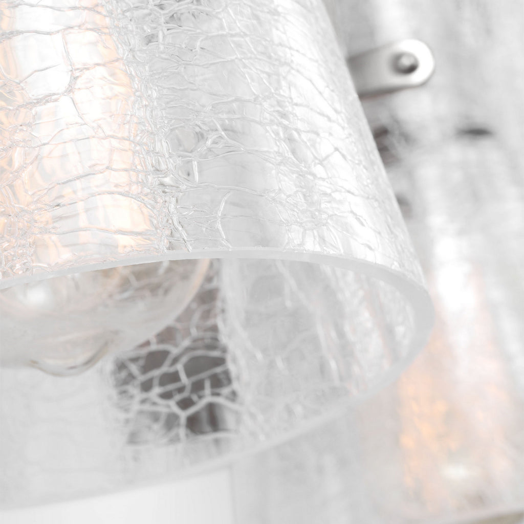 Add a bright burst of light where you need it most with the stylish Drew & Jonathan Crofton wall light, featuring a sleek rectangular metal backplate and crackle clear glass shade. Made to coordinate across a broader range of bath hardware and design styles, the Crofton is available in four popular finishes, Brushed Steel, Chrome, Midnight Black, and Satin Brass. This light looks great on its own or installed above a bathroom vanity, and the glass shade makes it ideal for filament bulbs. This fixture may be mounted in the up or down position, and is cETL listed for damp locations, making it the perfect lighting solution for any space.