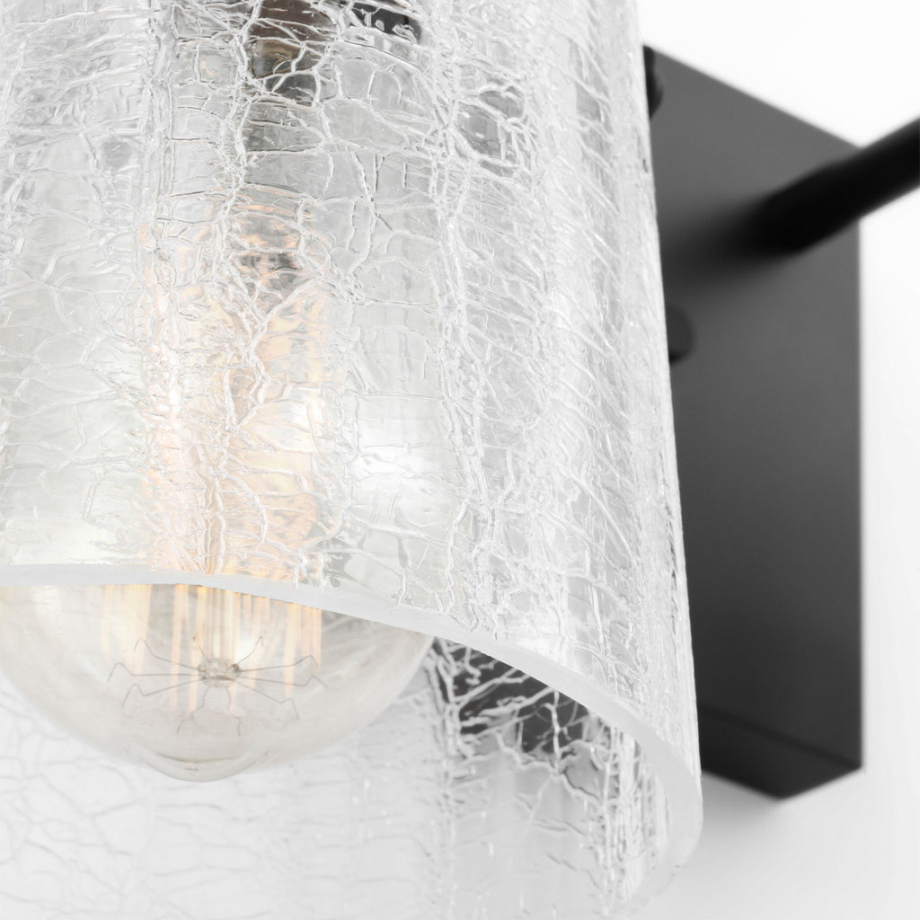 Add a bright burst of light where you need it most with the stylish Drew & Jonathan Crofton wall light, featuring a sleek rectangular metal backplate and crackle clear glass shade. Made to coordinate across a broader range of bath hardware and design styles, the Crofton is available in four popular finishes, Brushed Steel, Chrome, Midnight Black, and Satin Brass. This light looks great on its own or installed above a bathroom vanity, and the glass shade makes it ideal for filament bulbs. This fixture may be mounted in the up or down position, and is cETL listed for damp locations, making it the perfect lighting solution for any space.
